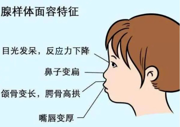 由于小儿鼾症会导致鼻呼吸受阻,从而让小孩子只能张口呼吸,而长期用口呼吸会导致面骨发育变形,形成开唇露齿,表情呆滞的痴呆面容,出现上唇短厚翘起、下颌骨下垂、牙齿排列不整齐的“腺样体面容”,对小孩子的颜值产生巨大危害。