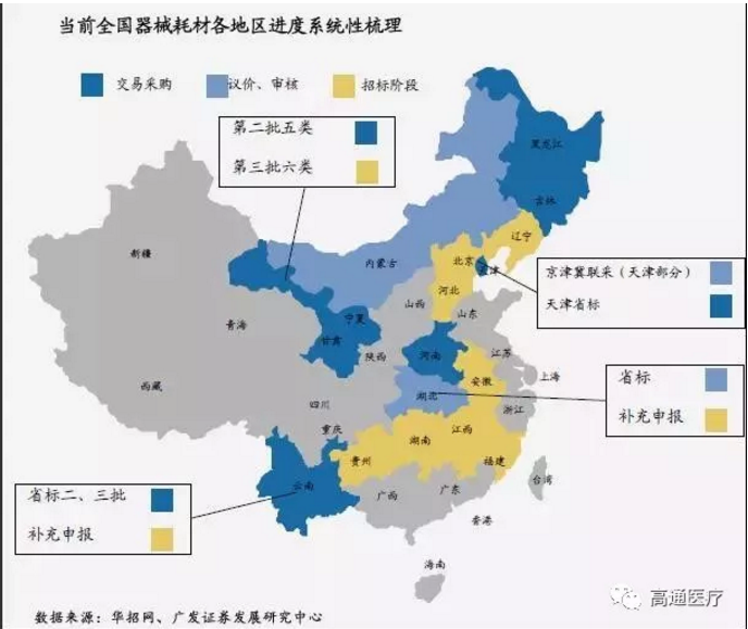 余下的13个项目,福建规定不维护数据库的企业后续不得参与高值阳光采购;云南启动两批高值耗材项目及申报工作;辽宁加入省际联盟前将耗材纳入指标;安徽开展临床检验试剂数据库申报;江西、贵州等仍在进行分批次招标工作。