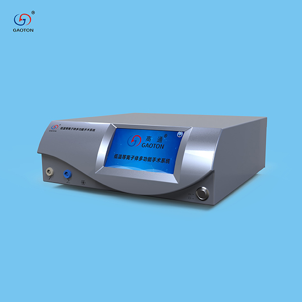 低温等离子体技术的工作原理,以一种特定波形下的电能,通过多极刀头在人体组织中激发血液、粘膜、髓核组织的胶原蛋白分子中的介质(Nacl)产生等离子体状态,再由等离子体中的高速带电粒子直接打断组织分子键,使组织蛋白汽化分解成H2、O2、CO2、N2和甲烷等低分子量气体,达到对组织的汽化、切割、打孔、消融、皱缩、剥离、止血、修复作用。